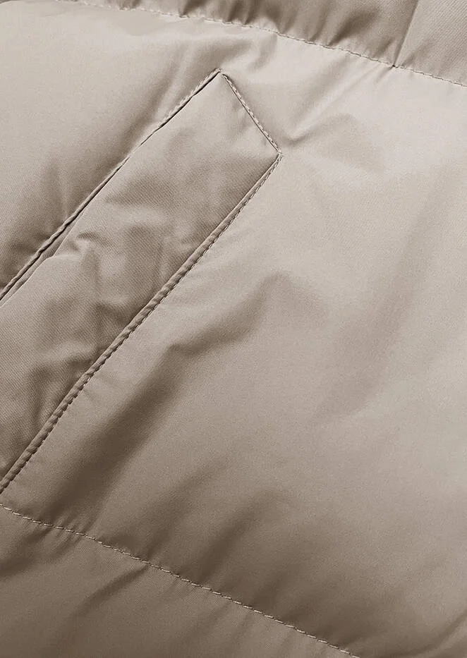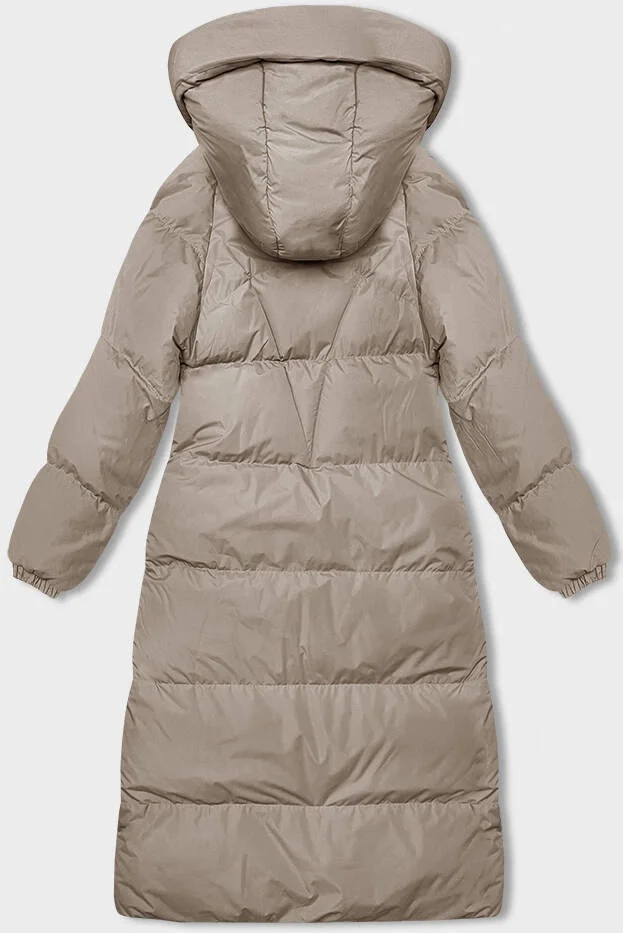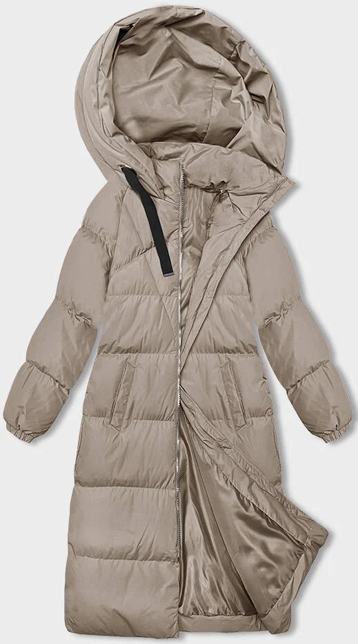 Světle béžová dlouhá hrubší dámská bunda s kapucí model 21246162 - J.STYLE