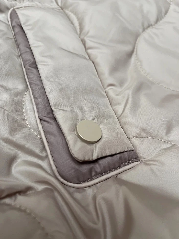 Vesta je zateplená syntetickou péřovou výplní, má dvě kapsy se zapínáním na patentky a zapíná se zipem. Model má kapuci, kterou je možné odepnout. Boky modelu je možné stáhnout. Spodní okraj vesty je polokulatý. Vesta má délku k bokům.
