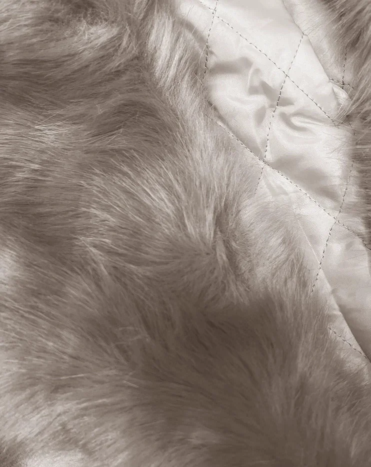 Bunda je lehce zateplená syntetickou péřovou výplní a má dvě kapsy se zapínáním na zip. Model má jako jediné zapínání všité popruhy pro zavazování. Bunda má kožešinový límec, přičemž kožešinu není možné odepnout. Model má délku do pasu.