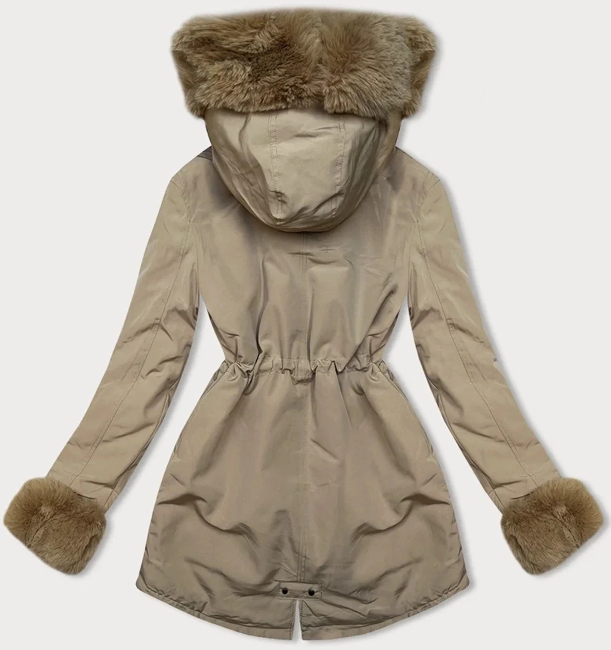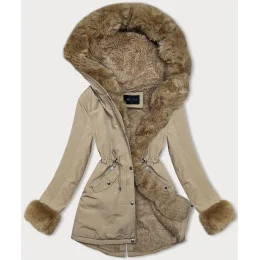 Světle béžová krátká dámská zimní bunda parka s kožešinovou podšívkou (16M9062-62)