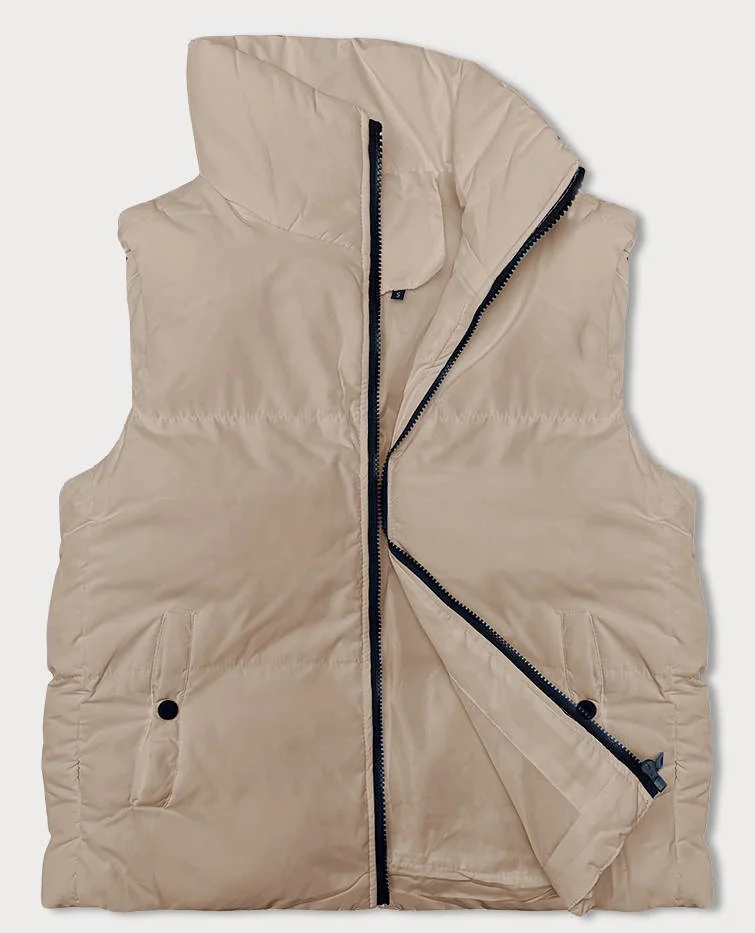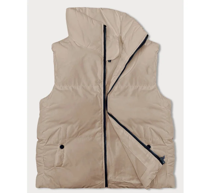 Světle béžová péřová dámská vesta se stojáčkem (5M3150-62)