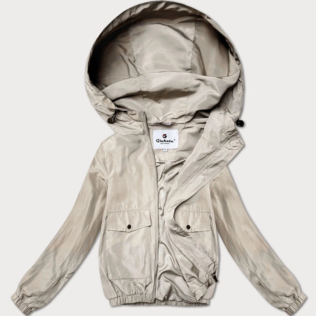 Světle béžová tenká krátká dámská bunda s podšívkou model 21061452 - Glakate