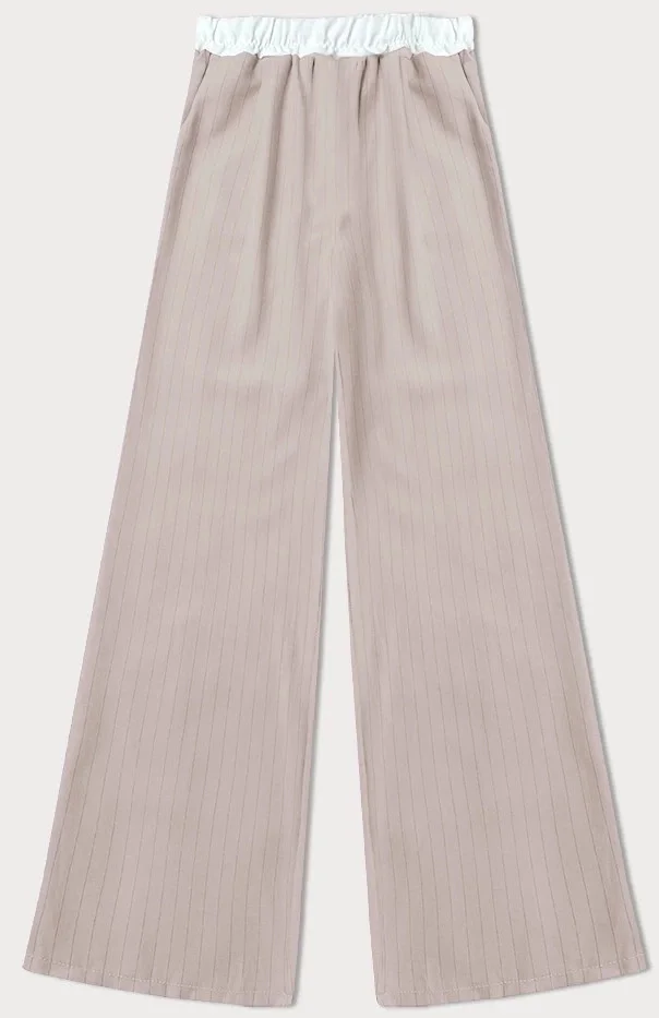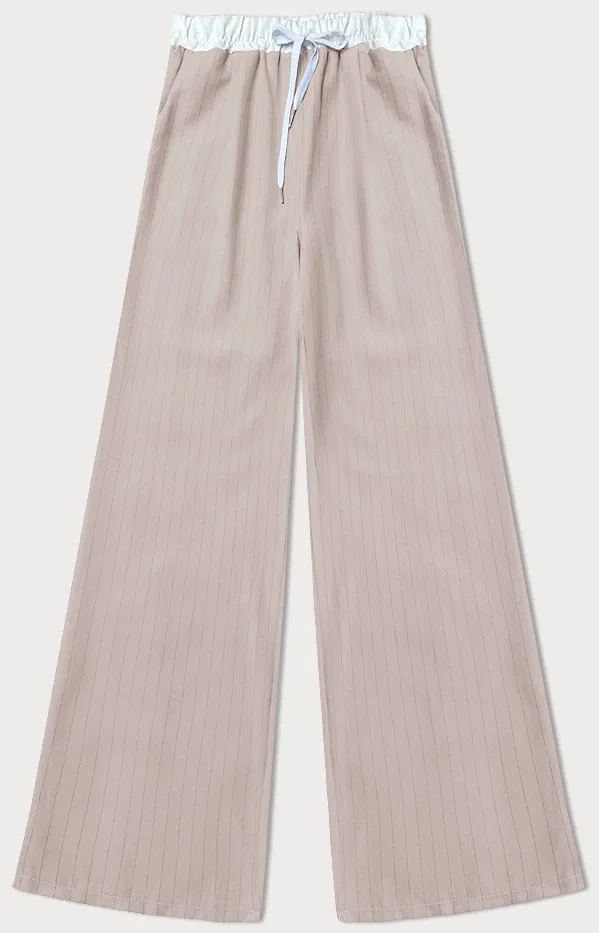 Světle béžové široké dámské pruhované kalhoty (18629)