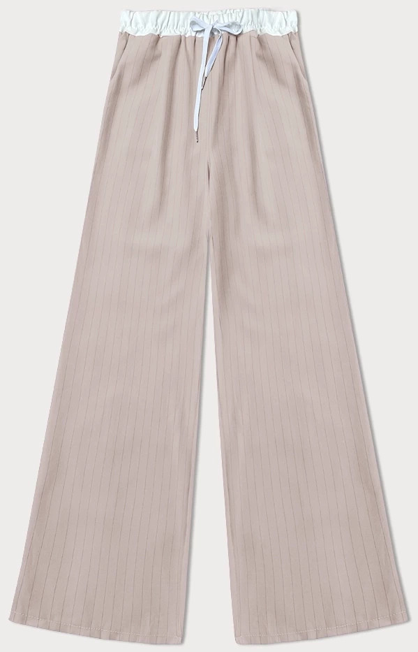 Světle béžové široké dámské pruhované kalhoty model 20147072 - MADE IN ITALY