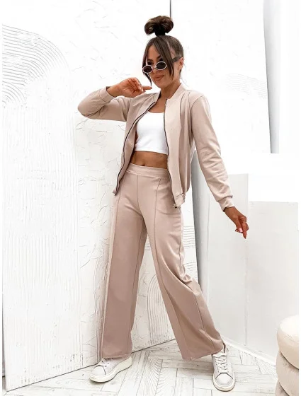 Světle béžový dámský komplet mikina a široké kalhoty model 20302391 - Moon
