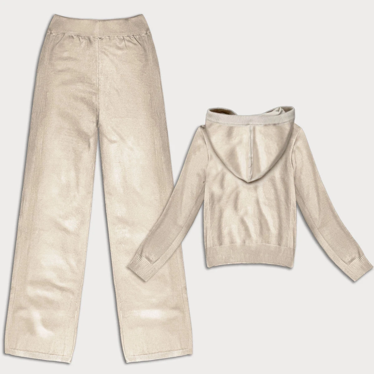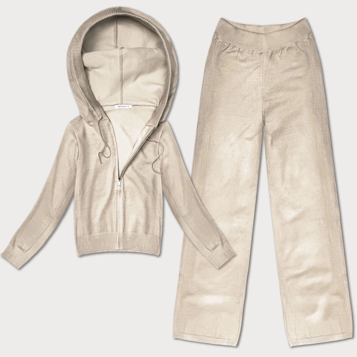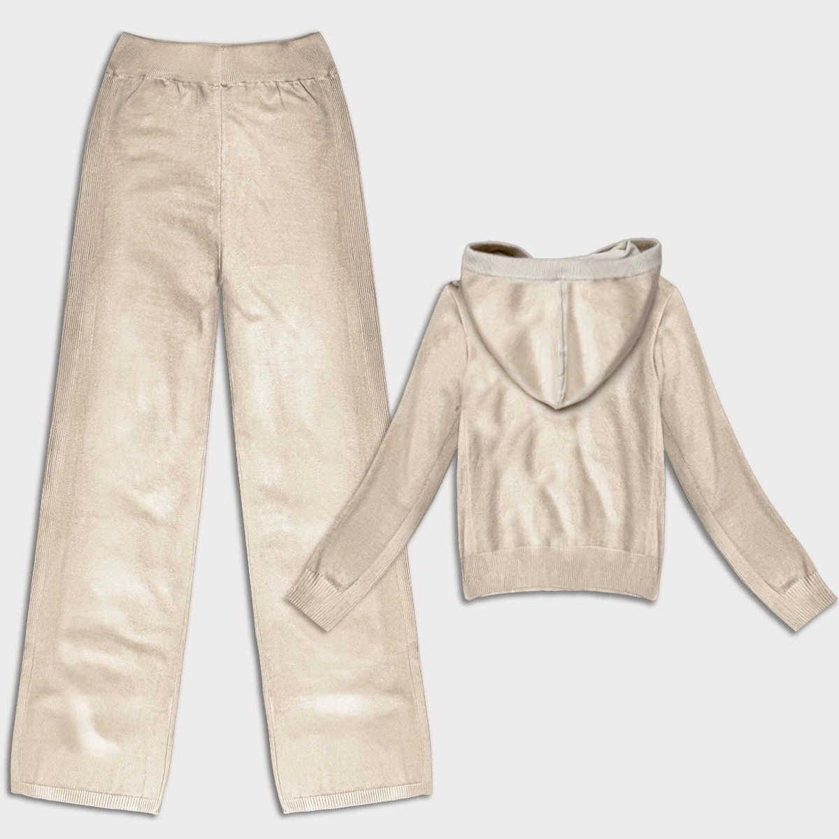 Světle béžový dvoudílný úpletový komplet mikina a kalhoty model 21466526 - ROMEE'S