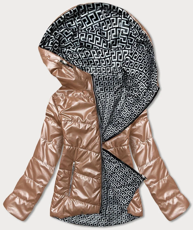 Světle hnědá dámská oboustranná bunda s kapucí model 17099267 - S'WEST
