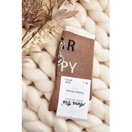 Přidání recenze k Světle hnědé dámské bavlněné ponožky s nápisem a medvídkem