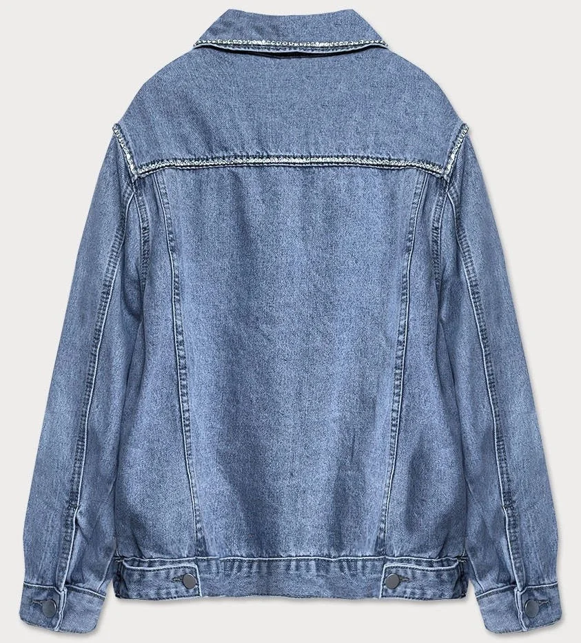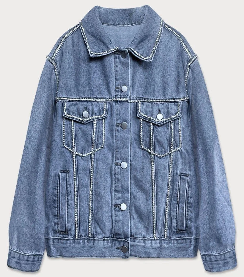 Světle modrá dámská džínová denim bunda se zirkony (T2861)