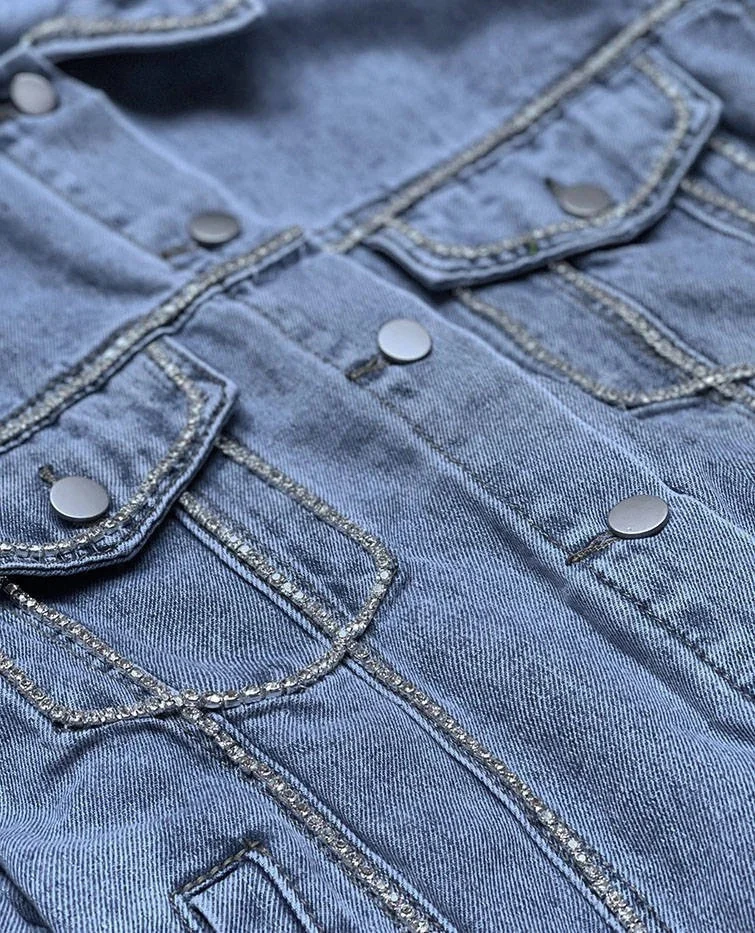 Přidání recenze k Světle modrá dámská džínová denim bunda se zirkony (T2861)