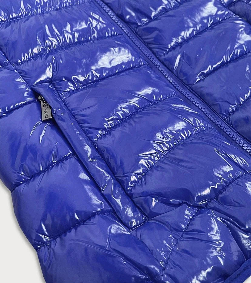 Přidání recenze k Světle modrá dámská lesklá vesta se stojáčkem (B0107)