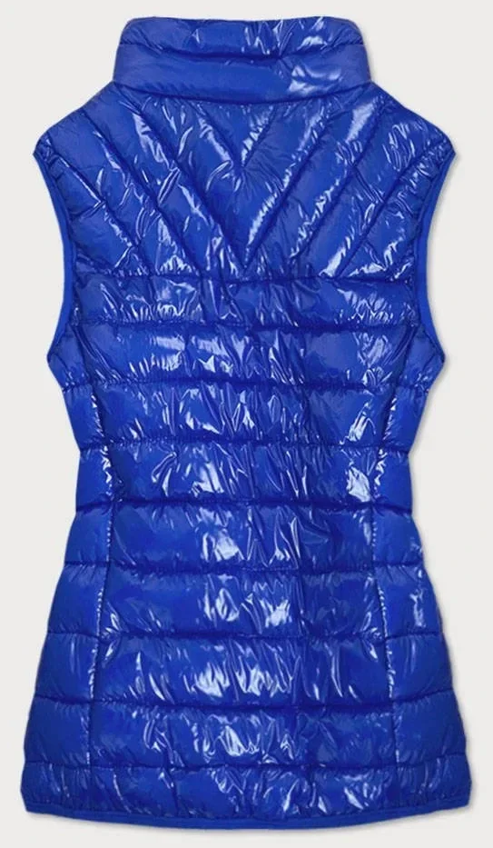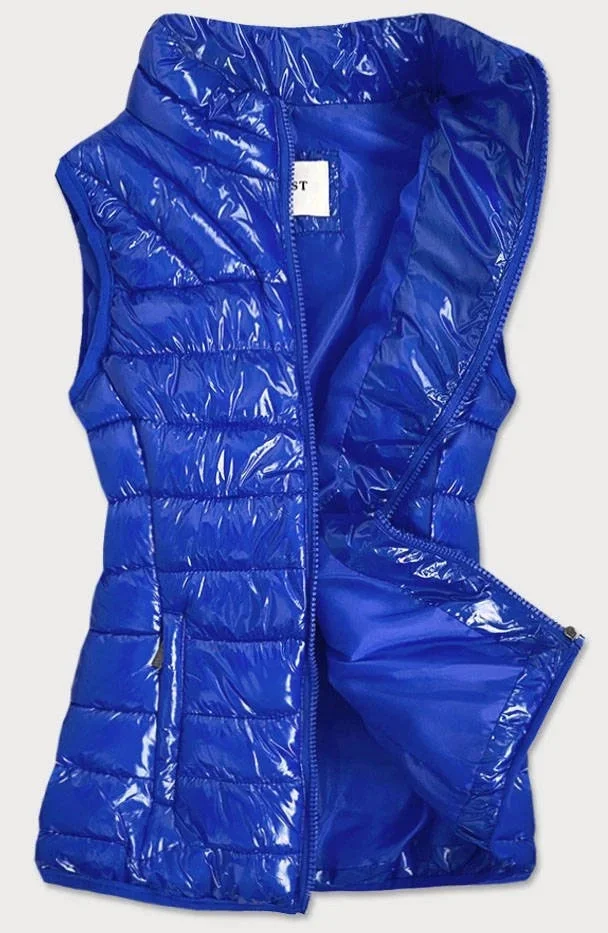 Světle modrá dámská lesklá vesta se stojáčkem (B0107)