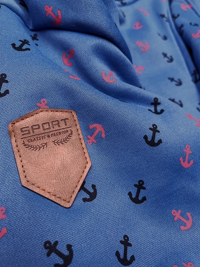 Přidání recenze k Světle modrá hrubší mikina se šikmým zipem a se vzorem kotev (2308)
