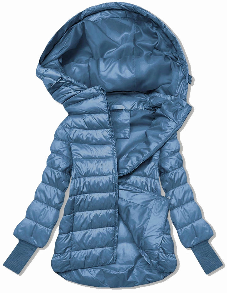Přidání recenze k Světle modrá krátká dámská bunda s úpletovými stahovacími lemy (P22/P3-6636-30S)