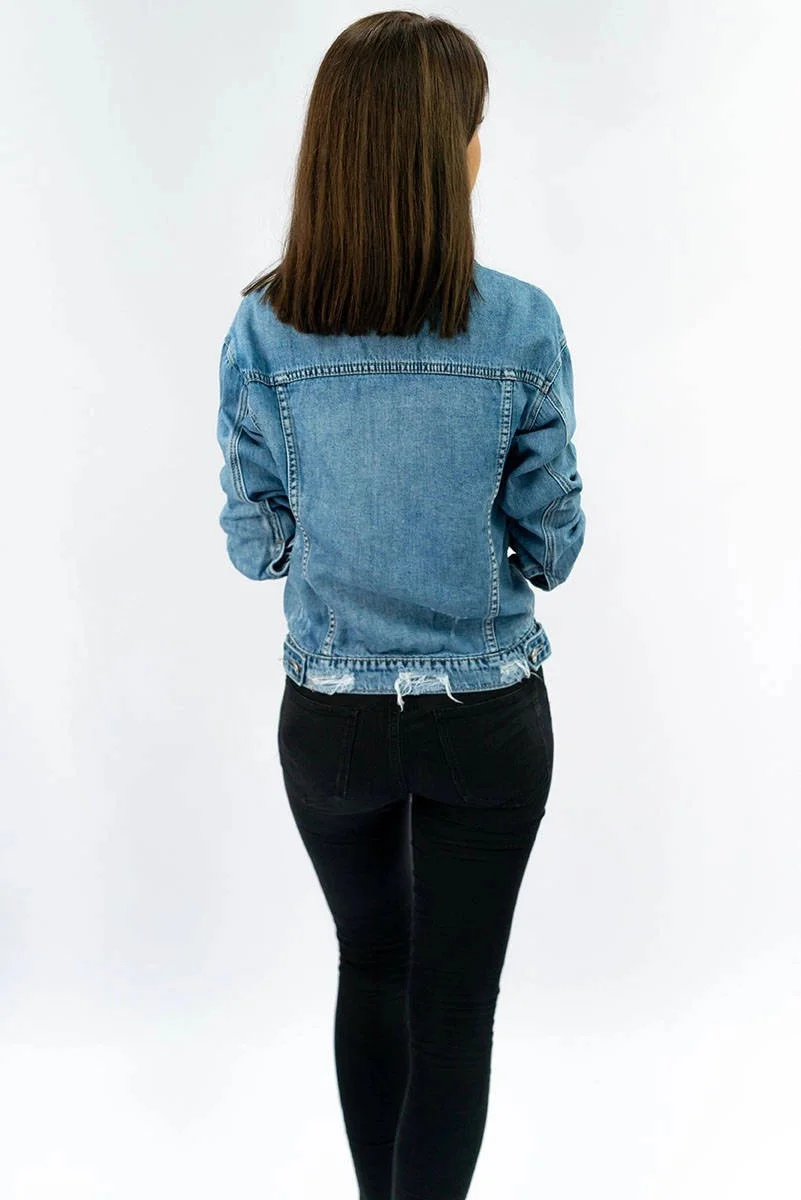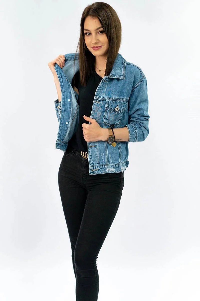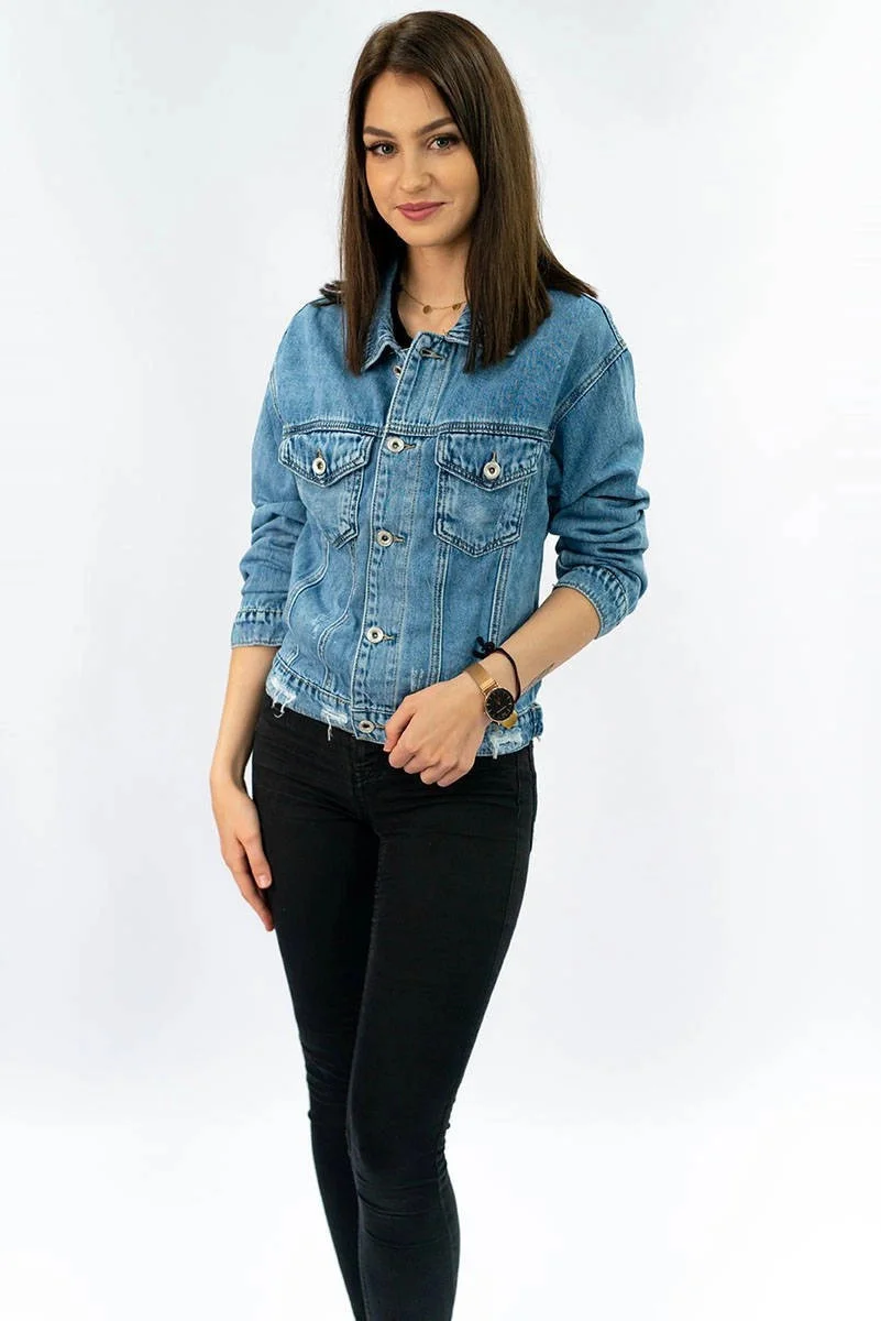 Dámská džínová bunda s protrženími