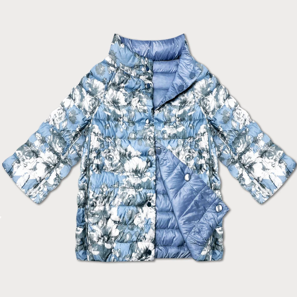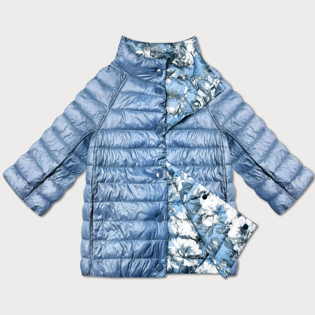 Světle modrá oboustranná květovaná dámská bunda se 3/4 rukávy Minority (M23-7009-50)