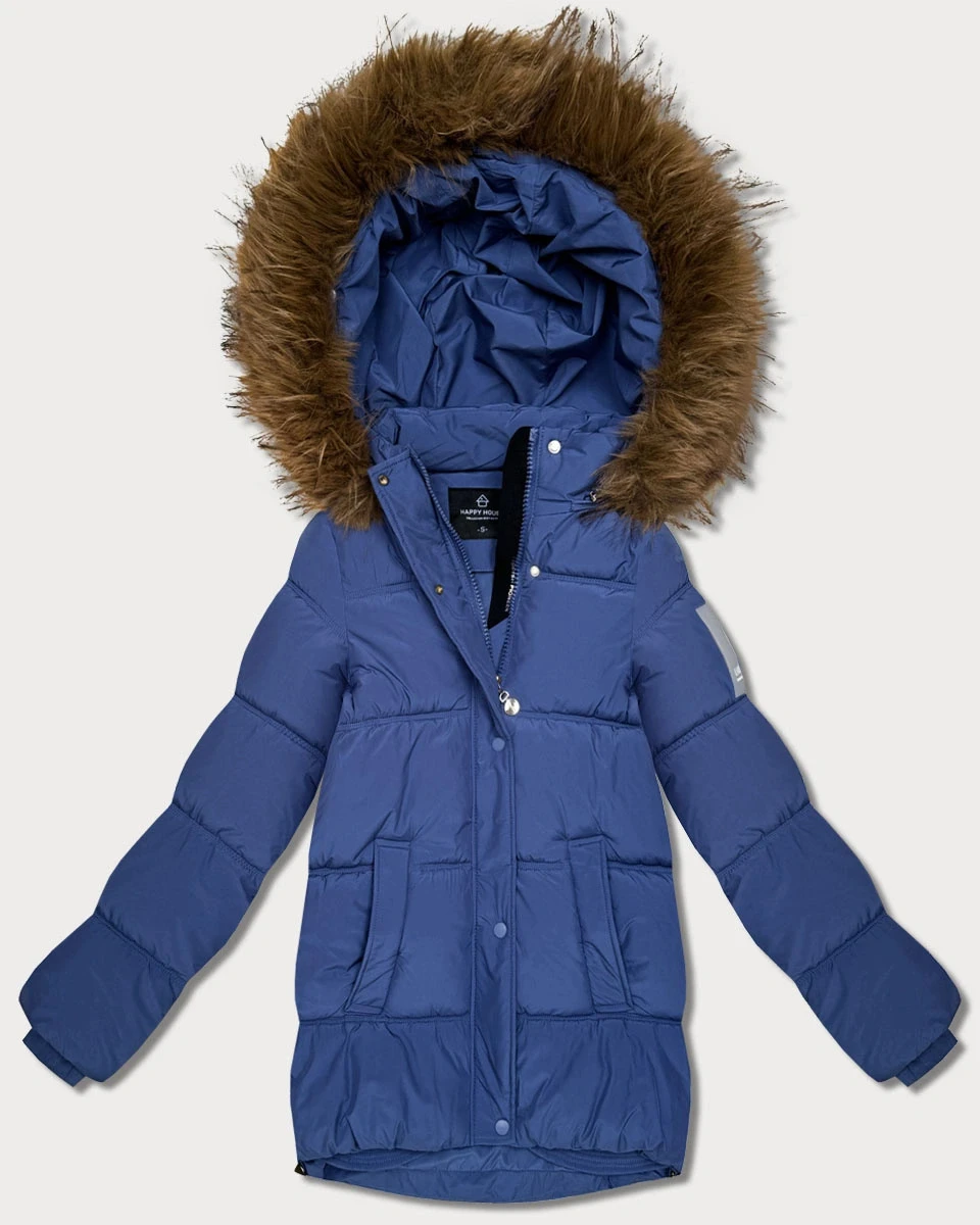 Světle modrá péřová bunda s kapucí model 21809049 - HAPPY HOUSE