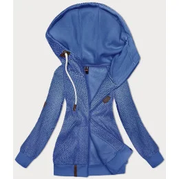 Světle modrá rozepínací mikina s kapucí a se vzorem drobných srdíček (2316)