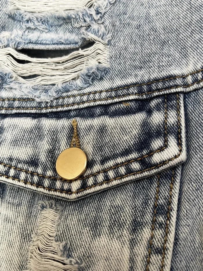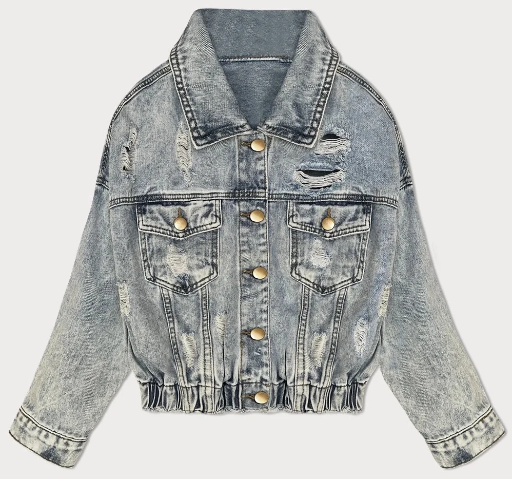 Světle modrá volná dámská bunda s protrženími (W024)