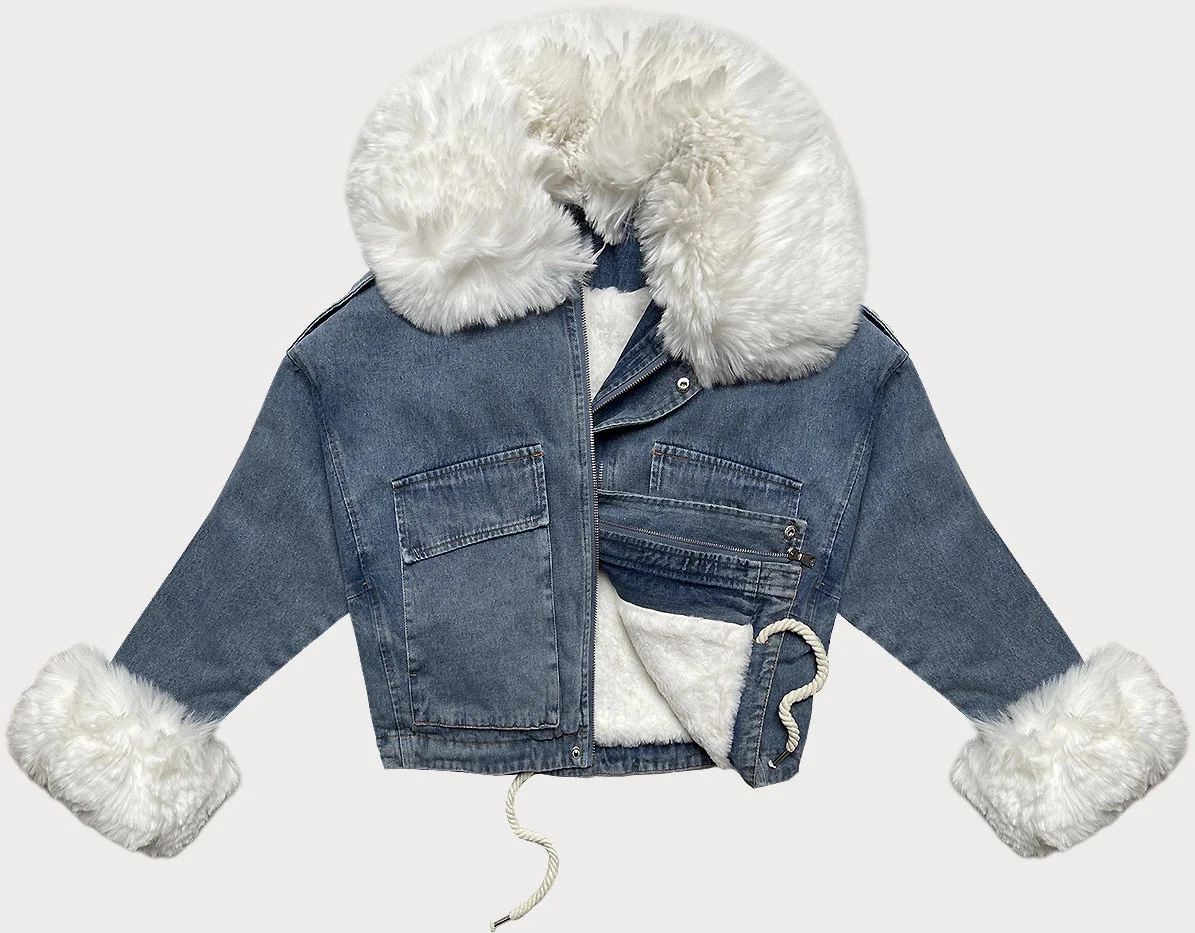 Přidání recenze k Světle modro/bílá krátká dámská džínová bunda s kožešinovou podšívkou J Style (11Z8219)