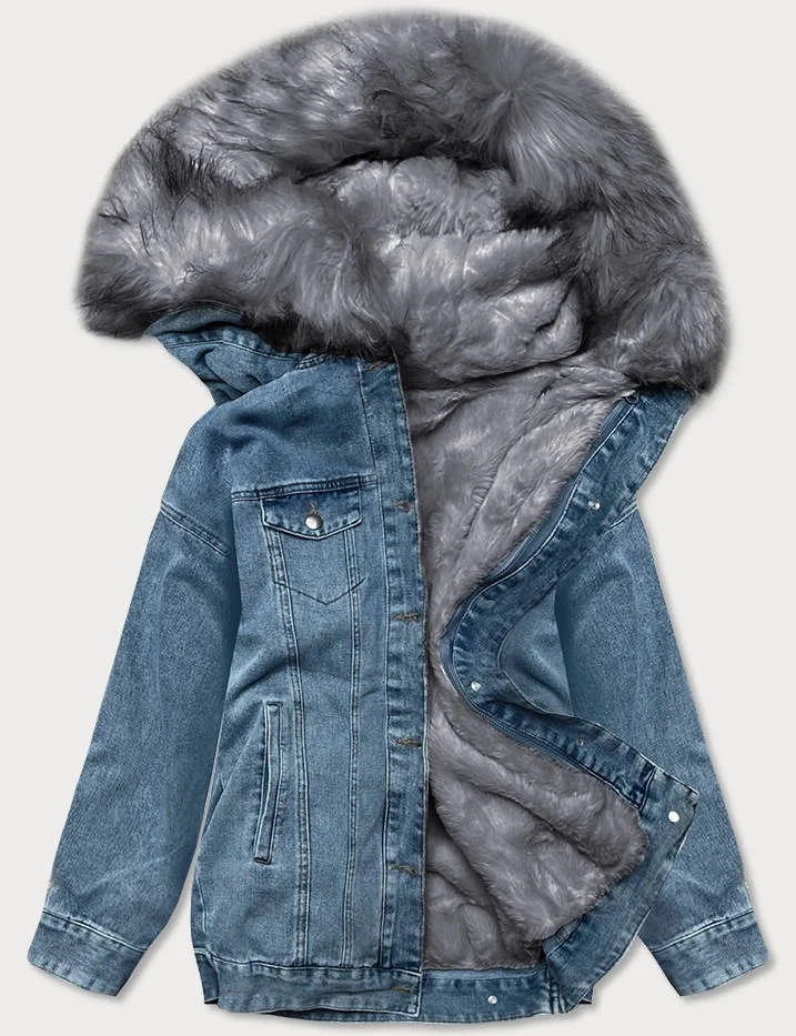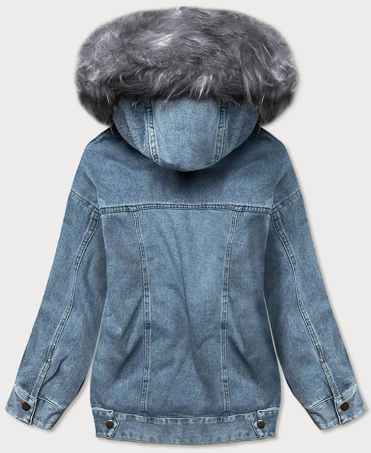 Světle modro-šedá dámská džínová bunda s kožešinovou odepínací podšívkou (br9588-5009)