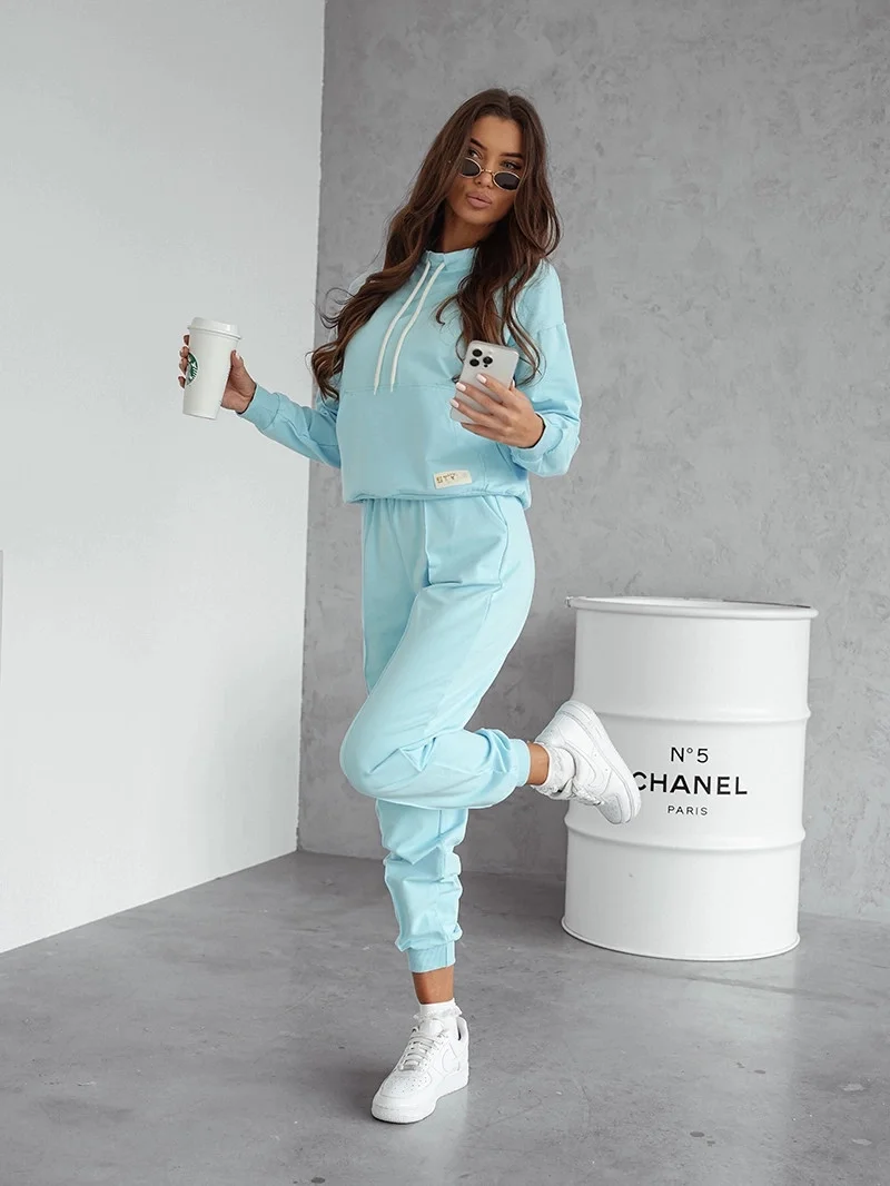 Přidání recenze k Světle modrý dámský teplákový komplet - mikna se stojáčkem a kalhoty (82162)