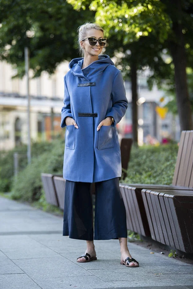 Přidání recenze k Světle modrý krátký dámský kabát s kapucí model 21798973 - Ann Gissy