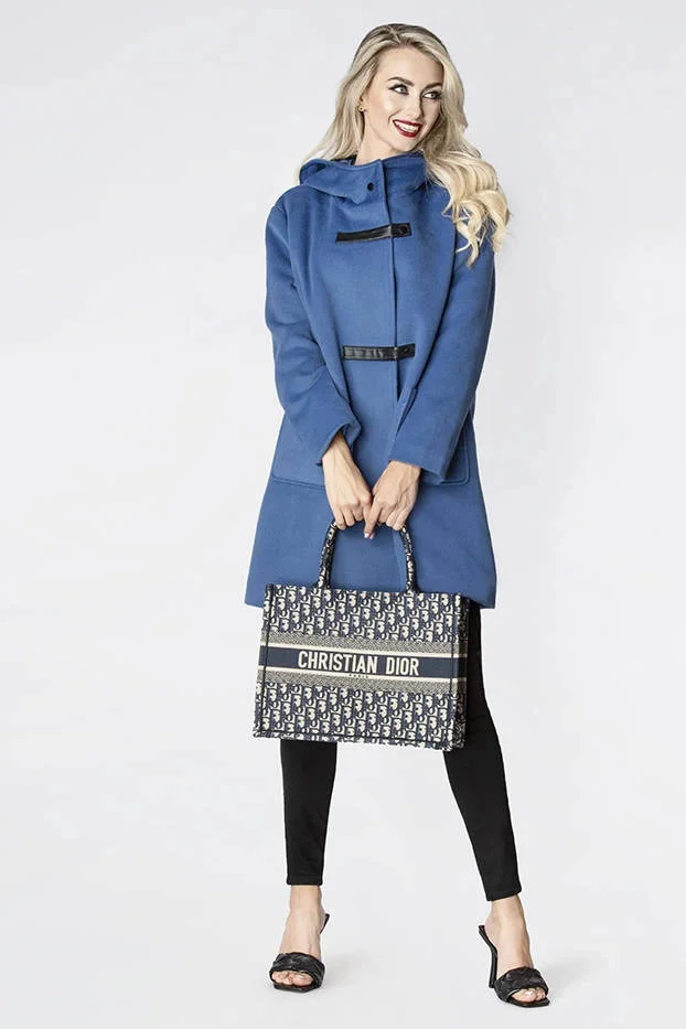Světle modrý krátký dámský kabát s kapucí model 21798973 - Ann Gissy