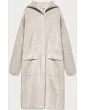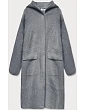 Přehoz je měkký a příjemný na dotyk, má dvě kapsy a zapíná se patentkami. Model má kapuci. Přehoz má délku do poloviny stehen.