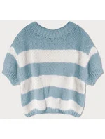 Přidání recenze k Světle modrý volný dámský pruhovaný svetr (761ART)