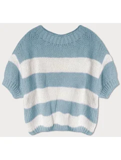 Světle modrý volný dámský pruhovaný svetr (761ART)