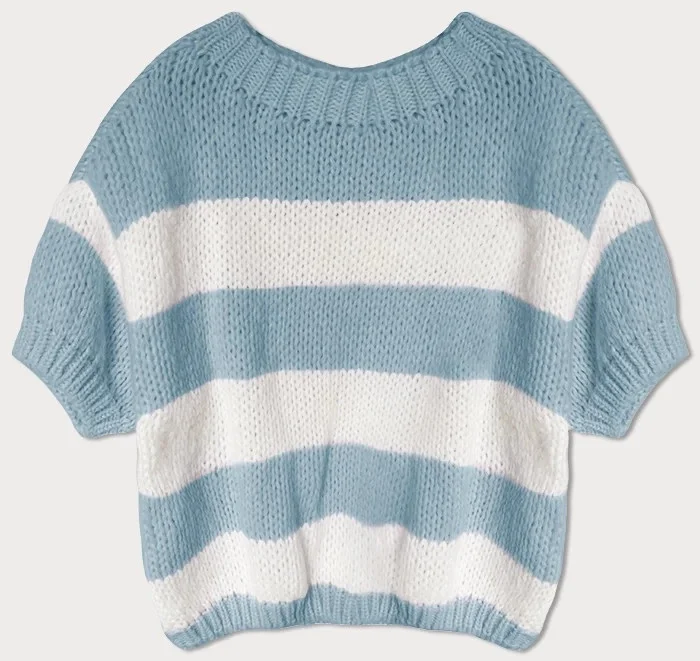 Světle modrý volný dámský pruhovaný svetr model 19735955 - MADE IN ITALY
