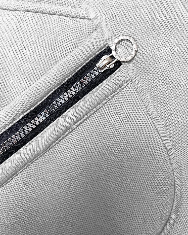 Mikina má jednoduchý střih, dvě kapsy a zapíná se zipem. Model má kapuci, kterou není možné odepnout. Mikinu zdobí vsadky ze svetříkového materiálu. Na konci rukávů jsou stahovací lemy. Model má délku k bokům.