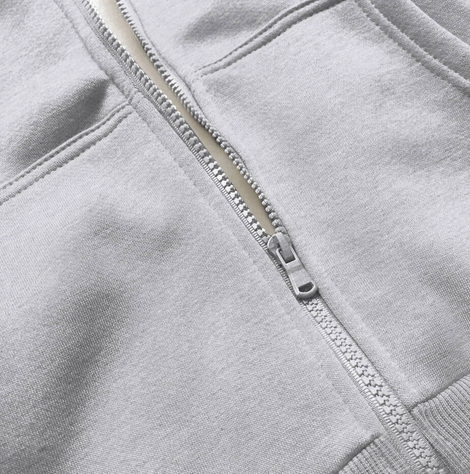 Mikina má volný střih, dvě kapsy a zapíná se zipem. Rukávy a spodní okraj modelu jsou olemované stahovacími lemy. Model má délku k bokům.
