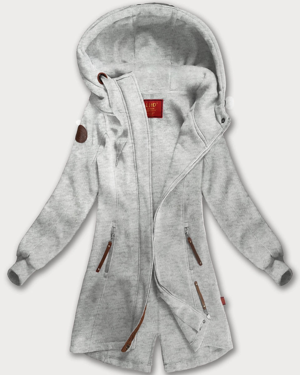 Světle šedá dlouhá dámská mikina s kapucí model 21251683 - LHD