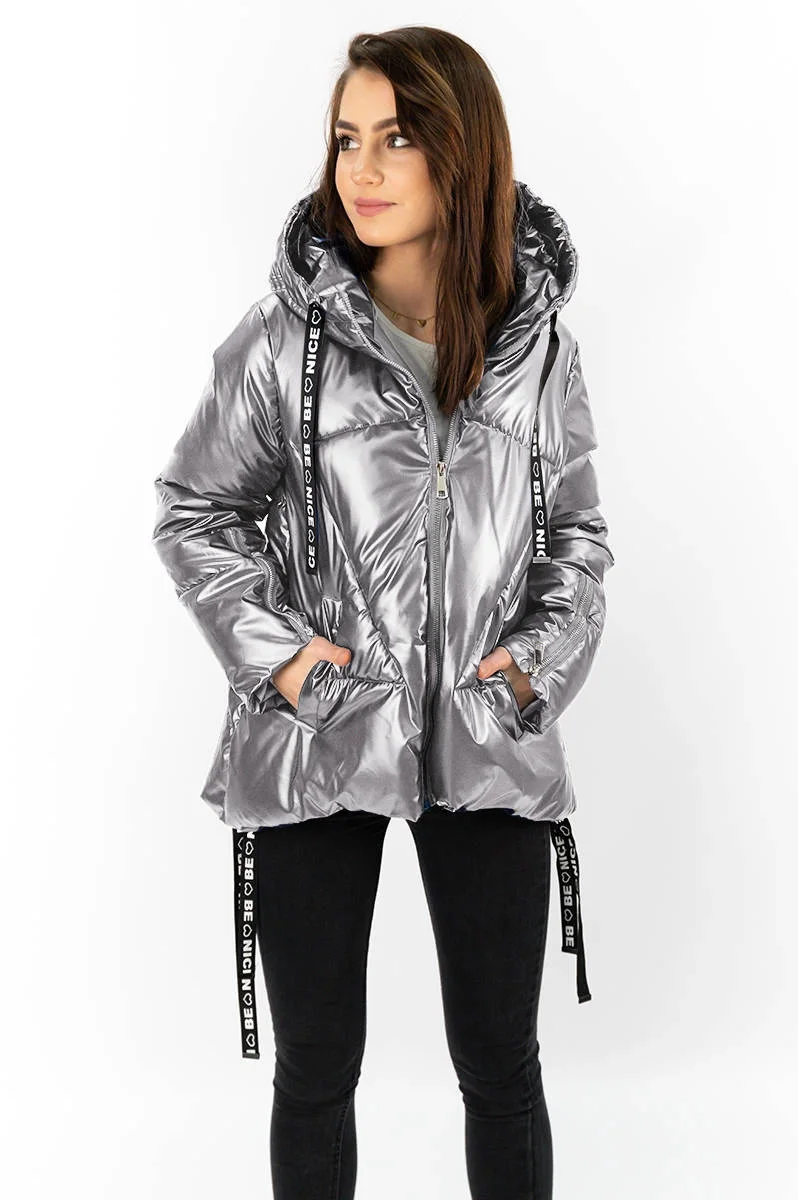 Metalická bunda s kapucí