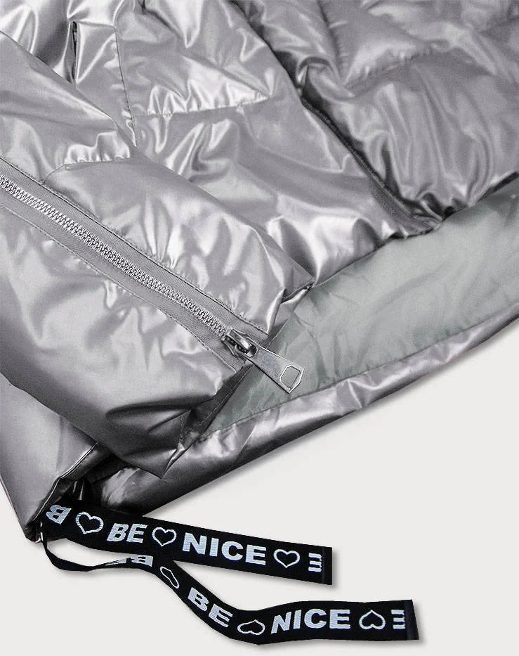 Přidání recenze k Světle šedá krátká dámská bunda s asymetrickou spodní částí (632art)