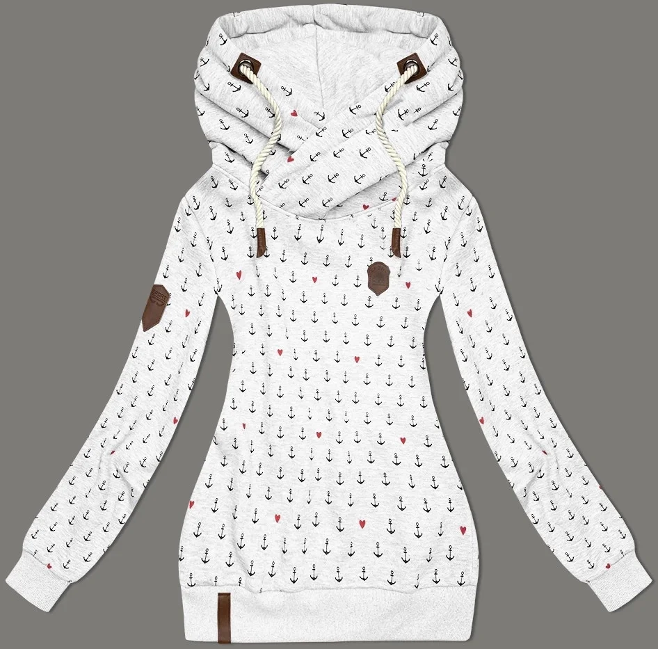 Světle šedá vzorovaná dámská mikina model 21310478 - 6&8 Fashion