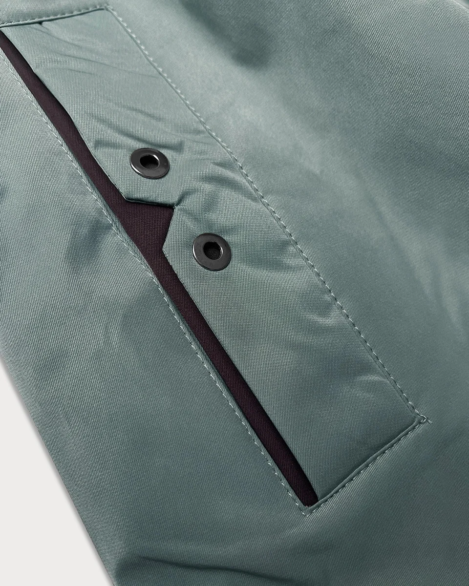 Bunda je zateplená tenkou vrstvou syntetické péřové výplně, má dvě kapsy bez zapínání a zapíná se zipem a panelem s patentkami. Model má kapuci, kterou není možné odepnout. V pase modelu je stahující šňůrka. Ve spodní části bundy jsou na bocích rozparky se zapínáním na patentky. Bunda má délku do poloviny stehen.