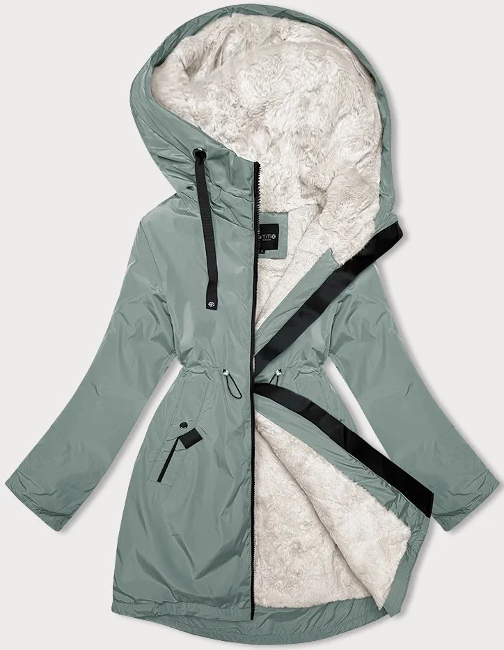 Přidání recenze k Světle zelená dámská zimní bunda s kožešinovou podšívkou Glakate (H-2978)