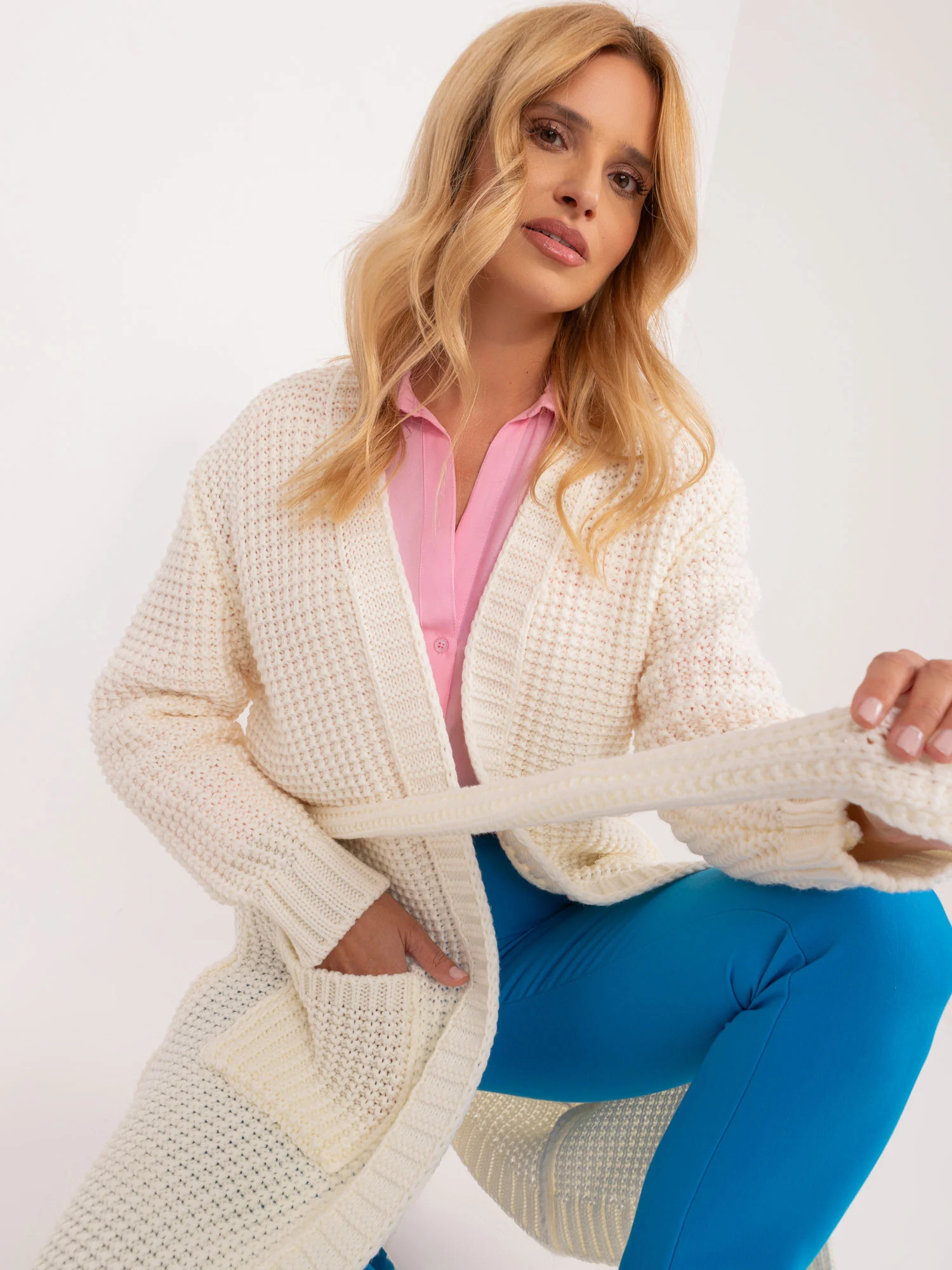 Ecru sweter oversize z szerokim rękawem i dziurami .