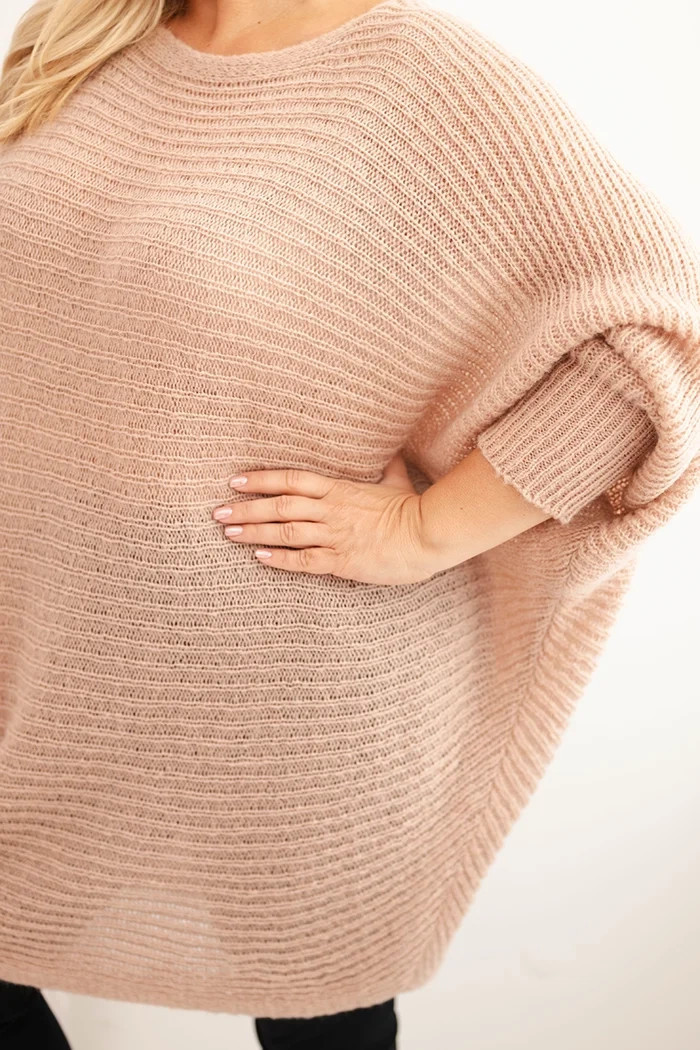 Svetr dámský Plus Size s moherem pončo pudrově růžový