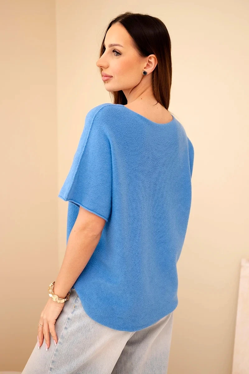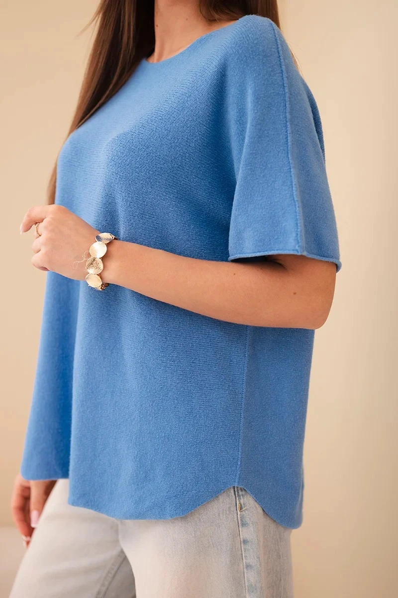 Svetr dámský s krátkým rukávem volného střihu modrý