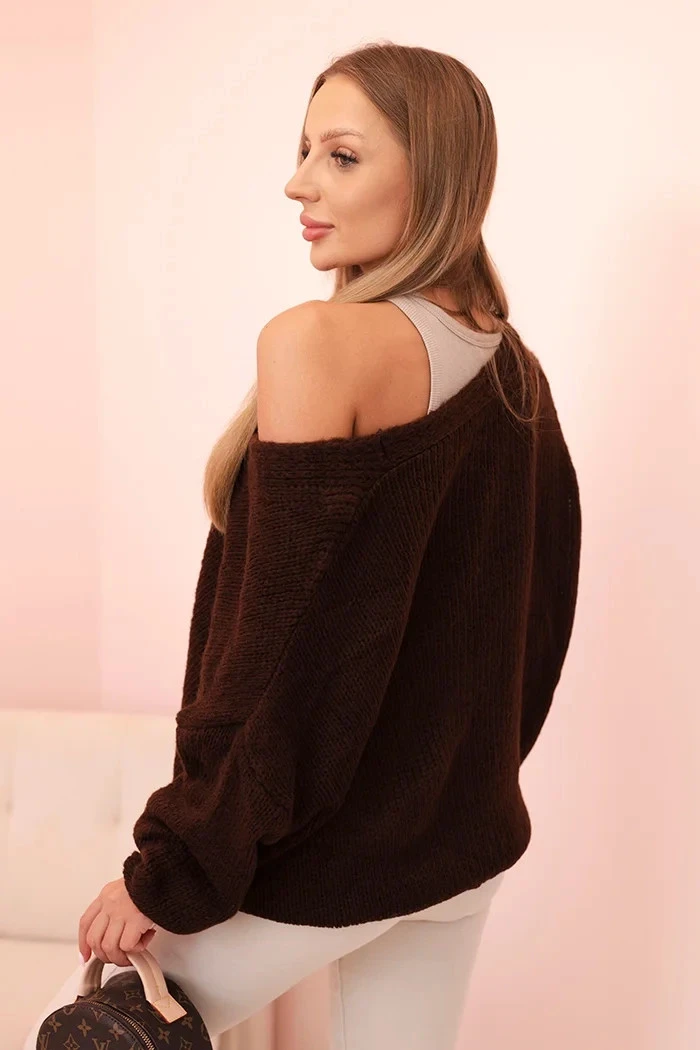 Svetr dámský s výstřihem do V a knoflíky hnědý