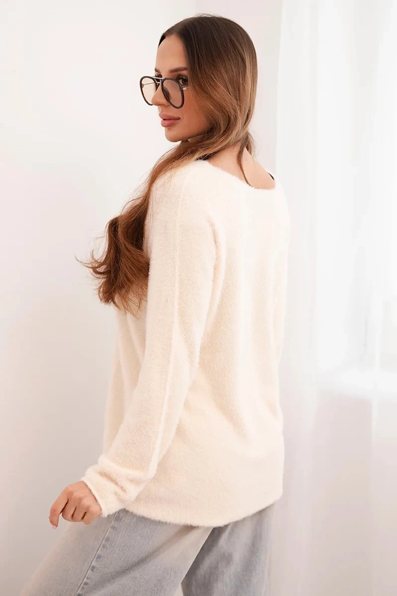 Svetr dámský z měkké pleteniny s dekoltem do V ecru