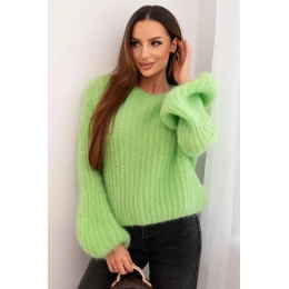 Svetr dámský z mohairu s bufáčovými rukávy jasně zelená