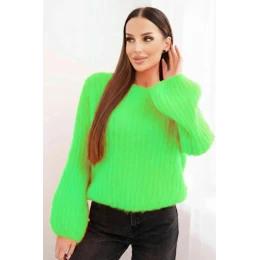 Svetr dámský z mohairu s model 21789288 rukávy jasně zelená - K-Fashion