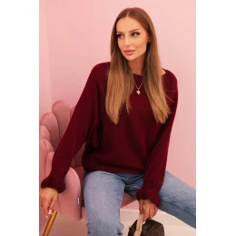 Svetr dámský z mohairu s nařasenými rukávy a výřezem na zádech bordový