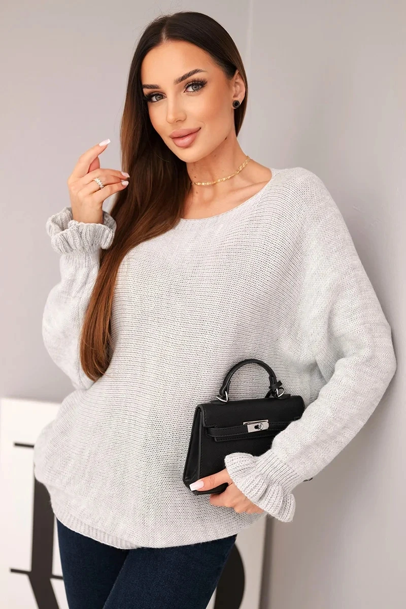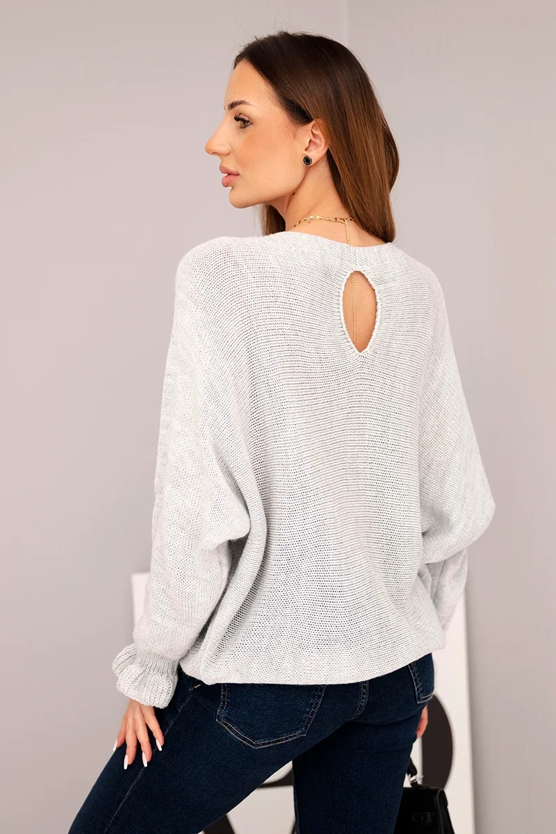 Svetr dámský z mohairu s nařasenými rukávy a výstřihem na zádech světlá šedá