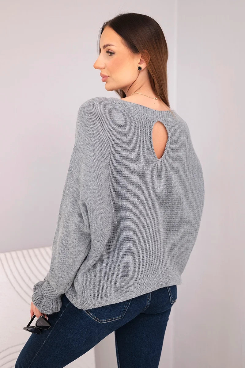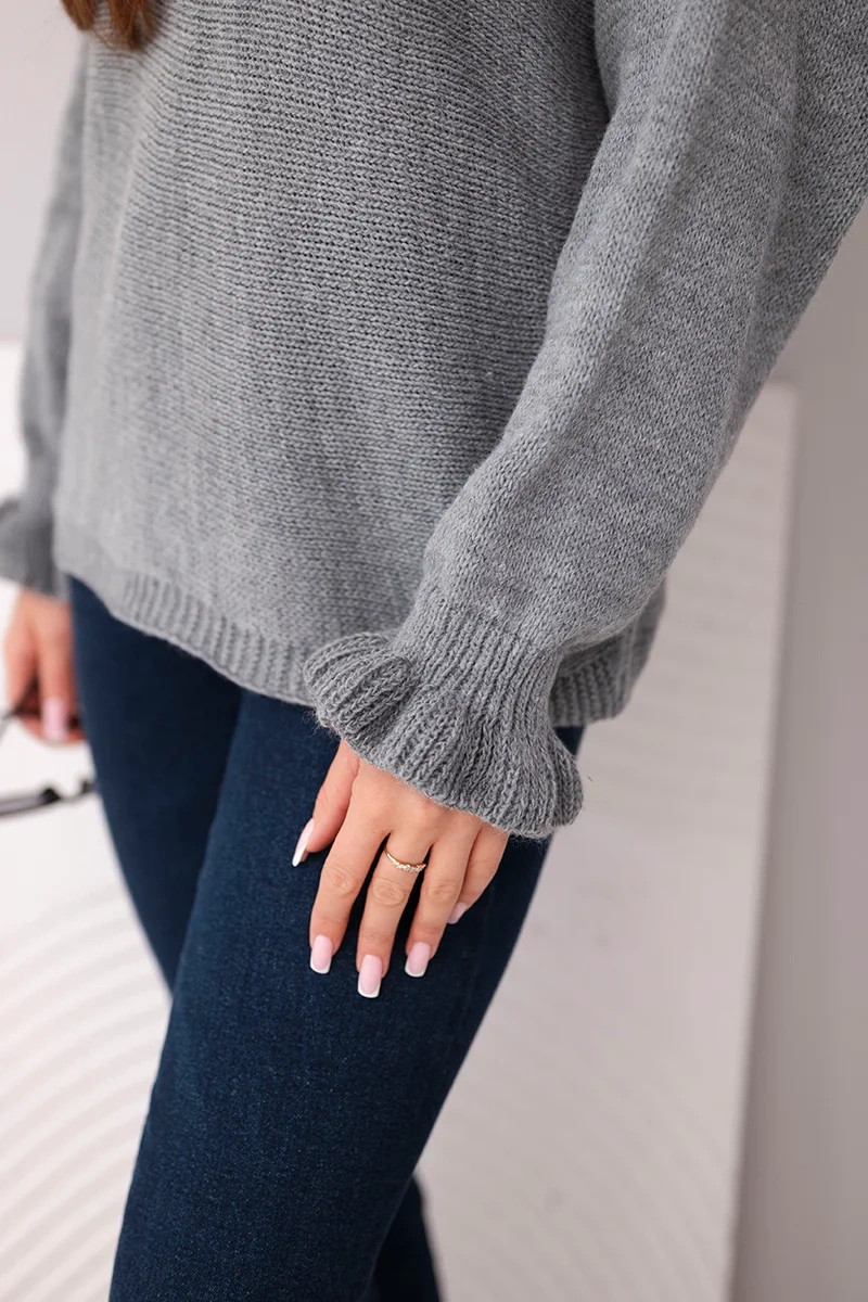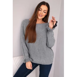 Svetr dámský z mohéru s nařasenými rukávy a výstřihem na zádech tmavě šedý
